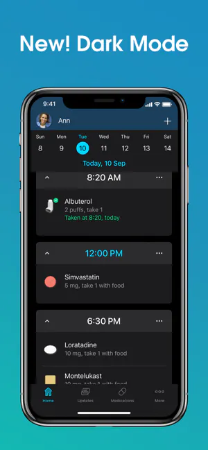 There can be colour customisation such as in Medisafe's premium version where users can choose among eight colour themes.