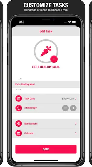 Minimisation and customisation are recognised as critical elements in Streaks, a 2016 Apple Design Award winning healthcare app. Essentially a habit-tracking to-do list, Streaks limits the number of tasks users can create and allows them to choose from a variety of icons and colour themes: