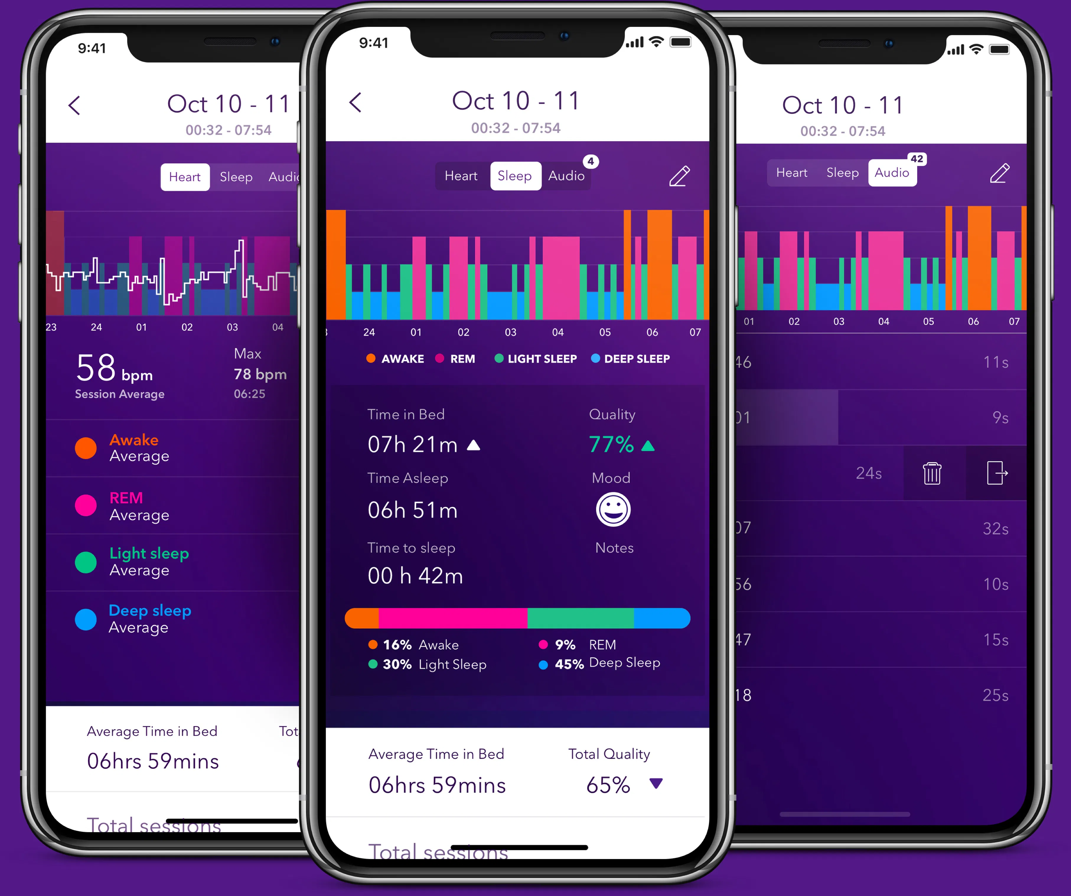 Since the choice of colours is naturally linked to the app's focus, it's common for sleep trackers to use darker tones:
